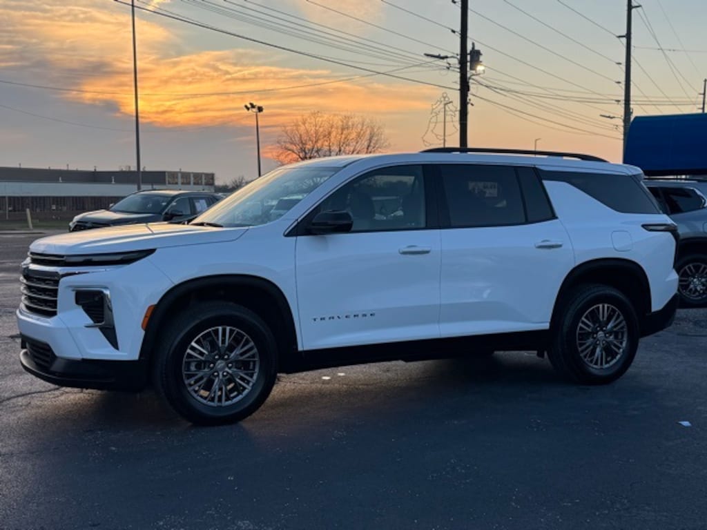 CARFAX One-Owner. Clean CARFAX. Summit White 2025 Chevrolet Traverse LT 1LT FWD 8-Speed Automatic 2.5L DOHC Apple CarPlay/Android Auto, Heated front seats, Heated steering wheel, Power Liftgate, 3rd row seats: split-bench, 4-Way Manual Front Passenger Seat Adjuster, 4-Wheel Disc Brakes, 6 Speakers, 6-Speaker Audio System Feature, 8-Way Power Driver Seat Adjuster, ABS brakes, Air Conditioning, Alloy wheels, AM/FM radio: SiriusXM with 360L, Auto High-beam Headlights, Automatic temperature control, Brake assist, Bumpers: body-color, Child-Seat-Sensing Airbag, Compass, Delay-off headlights, Driver door bin, Driver vanity mirror, Dual front impact airbags, Dual front side impact airbags, Electronic Stability Control, Emergency communication system: OnStar, Four wheel independent suspension, Front anti-roll bar, Front Bucket Seats, Front Center Armrest, Front dual zone A/C, Front reading lights, Fully automatic headlights, Heated door mirrors, Illuminated entry, Low tire pressure warning, Navigation System, Occupant sensing airbag, Outside temperature display, Overhead airbag, Overhead console, Panic alarm, Passenger door bin, Passenger vanity mirror, Power door mirrors, Power driver seat, Power steering, Power windows, Preferred Equipment Group 1LT, Premium Cloth Seat Trim, Radio data system, Rear air conditioning, Rear anti-roll bar, Rear reading lights, Rear window defroster, Rear window wiper, Remote keyless entry, Security system, Speed control, Speed-sensing steering, Spoiler, Steering wheel mounted audio controls, Tachometer, Telescoping steering wheel, Tilt steering wheel, Traction control, Trip computer, Turn signal indicator mirrors, Variably intermittent wipers, Voltmeter, Wheels: 18" Grazen Metallic Machined-Face Aluminum, Apple CarPlay/Android Auto, Heated front seats, Heated steering wheel, Power Liftgate.