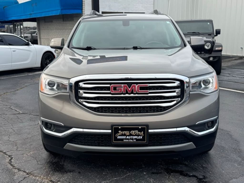CARFAX One-Owner. Pepperdust Metallic 2019 GMC Acadia SLE-2 FWD 6-Speed Automatic 3.6L V6 SIDI Apple CarPlay/Android Auto, Heated Driver & Front Passenger Seats, Power Liftgate, 155 Amp Alternator, 18" x 7.5" Aluminum (4) Wheels, 3rd row seats: split-bench, 4-Wheel Disc Brakes, 6 Speakers, 6-Passenger (2-2-2 Seating Configuration), 6-Speaker Audio System Feature, ABS brakes, Air Conditioning, Alloy wheels, AM/FM radio: SiriusXM, Automatic temperature control, Bose Premium 8-Speaker System, Brake assist, Bumpers: body-color, Compass, Delay-off headlights, Driver door bin, Driver vanity mirror, Dual front impact airbags, Dual front side impact airbags, Electronic Stability Control, Enhanced Driver Instrument Information Display, Exterior Parking Camera Rear, Four wheel independent suspension, Front anti-roll bar, Front Bucket Seats, Front Center Armrest, Front dual zone A/C, Front fog lights, Front License Plate Bracket, Front reading lights, Fully automatic headlights, Heated door mirrors, Heated front seats, Illuminated entry, Knee airbag, Low tire pressure warning, Occupant sensing airbag, Outside temperature display, Overhead airbag, Overhead console, Panic alarm, Passenger door bin, Passenger vanity mirror, Power door mirrors, Power driver seat, Power steering, Power windows, Preferred Equipment Group 3SB, Premium audio system: GMC Infotainment System, Premium Cloth Seat Trim, Radio data system, Radio: AM/FM w/7" Diagonal Color Touch Screen, Radio: AM/FM w/8" Diagonal Color Touch Screen, Rear air conditioning, Rear anti-roll bar, Rear reading lights, Rear window defroster, Rear window wiper, Remote keyless entry, Roof rack: rails only, Security system, SiriusXM Radio, Speed control, Speed-sensing steering, Spoiler, Steering wheel mounted audio controls, Stop-Start Engine Control System, Tachometer, Telescoping steering wheel, Tilt steering wheel, Traction control, Trip computer, Variably intermittent wipers, Voltmeter, Apple CarPlay/Android Auto, Heated Driver & Front Passenger Seats, Power Liftgate.