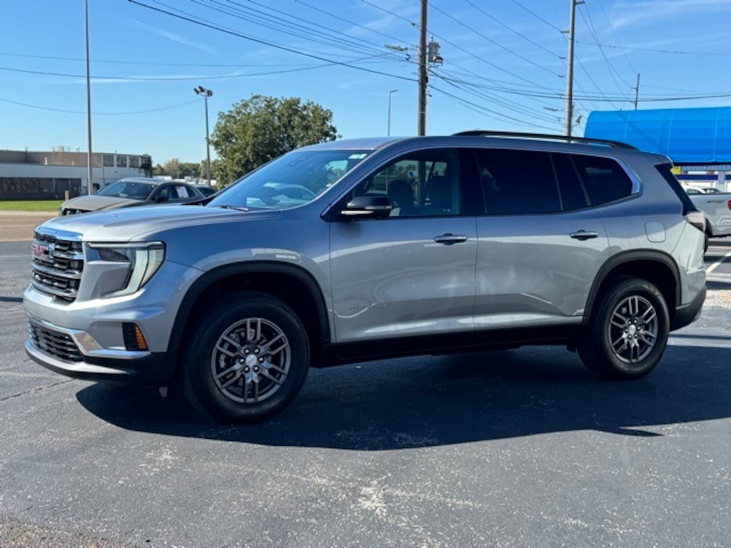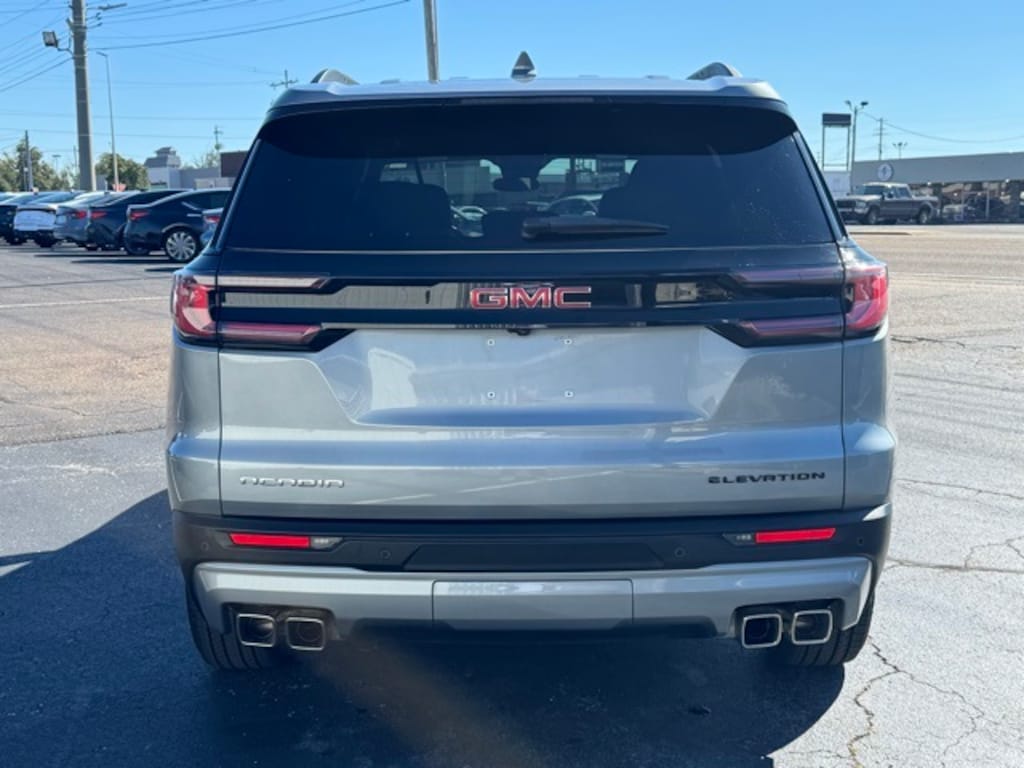 CARFAX One-Owner. Clean CARFAX. Sterling Metallic 2025 GMC Acadia Elevation FWD 8-Speed Automatic 2.5L DOHC Apple CarPlay/Android Auto, Power Liftgate, 12 Speakers, 18" x 7.5" Aluminum Wheels, 2-Way Driver Power Lumbar Seat Adjuster, 3.49 Final Drive Axle Ratio, 3rd row seats: split-bench, 4-Way Manual Front Passenger Seat Adjuster, 4-Wheel Disc Brakes, 8-Passenger Seating (2-3-3 Seating Configuration), 8-Way Power Driver Seat Adjuster, ABS brakes, Air Conditioning, Alloy wheels, AM/FM radio: SiriusXM with 360L, Auto High-beam Headlights, Auto-dimming Rear-View mirror, Automatic temperature control, Bodyside moldings, Bose Premium 12-Speaker System w/Sub-Woofer, Brake assist, Bumpers: body-color, Cloth Seat Trim, Compass, Delay-off headlights, Driver door bin, Driver vanity mirror, Dual front impact airbags, Dual front side impact airbags, Electronic Stability Control, Emergency communication system: OnStar Services capable, Exterior Parking Camera Rear, Four wheel independent suspension, Front anti-roll bar, Front Bucket Seats, Front Center Armrest, Front dual zone A/C, Front fog lights, Front reading lights, Fully automatic headlights, Heated door mirrors, Heated Driver & Front Passenger Seats, Heated front seats, Heated steering wheel, Illuminated entry, Leather steering wheel, Low tire pressure warning, Navigation System, Occupant sensing airbag, Outside temperature display, Overhead airbag, Overhead console, Panic alarm, Passenger door bin, Passenger vanity mirror, Power door mirrors, Power driver seat, Power steering, Power windows, Preferred Equipment Group 4SC, Radio data system, Radio: 15" Premium GMC Infotainment System, Rear air conditioning, Rear anti-roll bar, Rear reading lights, Rear seat center armrest, Rear side impact airbag, Rear window defroster, Rear window wiper, Remote keyless entry, Security system, SiriusXM w/360L, Speed control, Speed-sensing steering, Split folding rear seat, Spoiler, Sport steering wheel, Steering wheel mounted audio controls, Tachometer, Telescoping steering wheel, Tilt steering wheel, Traction control, Trip computer, Turn signal indicator mirrors, Variably intermittent wipers, Voltmeter, Apple CarPlay/Android Auto, Power Liftgate.