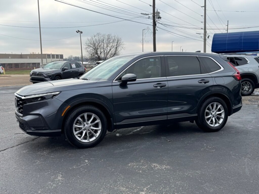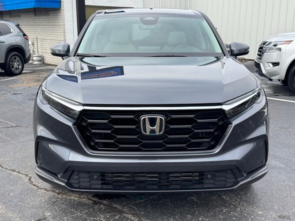 CARFAX One-Owner. Clean CARFAX. Meteorite Gray Metallic 2023 Honda CR-V EX-L FWD CVT 1.5L I4 DOHC 16V Adaptive Cruise Control: Adaptive Cruise Control (ACC) with Low-Speed Follow, Heated Front Bucket Seats, Leather Seat Trim, Power Liftgate, Power moonroof, 4-Wheel Disc Brakes, 5.64 Axle Ratio, 8 Speakers, ABS brakes, Air Conditioning, Alloy wheels, AM/FM radio: SiriusXM, Auto High-beam Headlights, Auto-dimming Rear-View mirror, Automatic temperature control, Blind Spot Information (BSI) System warning, Brake assist, Bumpers: body-color, Compass, Delay-off headlights, Driver door bin, Driver vanity mirror, Dual front impact airbags, Dual front side impact airbags, Electronic Stability Control, Exterior Parking Camera Rear, Four wheel independent suspension, Front anti-roll bar, Front Bucket Seats, Front Center Armrest, Front dual zone A/C, Front reading lights, Fully automatic headlights, Heated door mirrors, Heated front seats, Illuminated entry, Knee airbag, Leather Shift Knob, Leather steering wheel, Low tire pressure warning, Memory seat, Occupant sensing airbag, Outside temperature display, Overhead airbag, Overhead console, Panic alarm, Passenger door bin, Passenger vanity mirror, Power door mirrors, Power driver seat, Power passenger seat, Power steering, Power windows, Radio data system, Radio: 320-Watt AM/FM/HD/SiriusXM Audio System, Rear anti-roll bar, Rear reading lights, Rear seat center armrest, Rear side impact airbag, Rear window defroster, Rear window wiper, Remote keyless entry, Security system, Speed control, Speed-sensing steering, Speed-Sensitive Wipers, Split folding rear seat, Spoiler, Steering wheel mounted audio controls, Tachometer, Telescoping steering wheel, Tilt steering wheel, Traction control, Trip computer, Turn signal indicator mirrors, Variably intermittent wipers, Wheels: 18" Sparkle Silver Metallic, Wireless Apple CarPlay/Wireless Android Auto, Adaptive Cruise Control: Adaptive Cruise Control (ACC) with Low-Speed Follow, Heated Front Bucket Seats, Leather Seat Trim, Power Liftgate, Power moonroof.