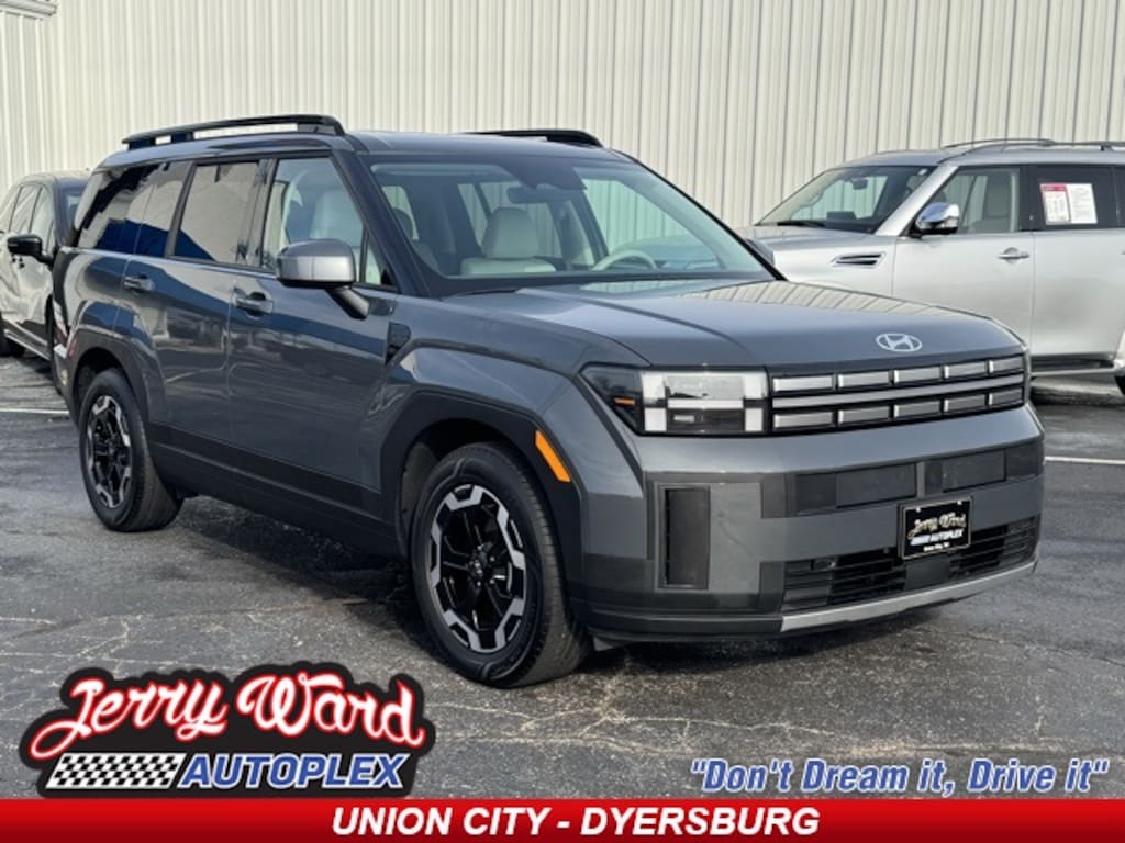 CARFAX One-Owner. Ecotronic Gray 2025 Hyundai Santa Fe SEL FWD Shiftronic 2.5L I4 Apple CarPlay & Android Auto, H-Tex Leatherette Seat Trim, Heated Front Bucket Seats, Power Liftgate, 18" x 7.5J Alloy Wheels, 3rd row seats: bench, 4-Wheel Disc Brakes, 6 Speakers, ABS brakes, Air Conditioning, Alloy wheels, AM/FM radio: SiriusXM, Auto High-beam Headlights, Automatic temperature control, Brake assist, Bumpers: body-color, Delay-off headlights, Driver door bin, Driver vanity mirror, Dual front impact airbags, Dual front side impact airbags, Electronic Stability Control, Emergency communication system, Exterior Parking Camera Rear, Four wheel independent suspension, Front anti-roll bar, Front Bucket Seats, Front Center Armrest, Front dual zone A/C, Front reading lights, Fully automatic headlights, Heated door mirrors, Illuminated entry, Knee airbag, Leather steering wheel, Low tire pressure warning, Occupant sensing airbag, Option Group 01, Outside temperature display, Overhead airbag, Overhead console, Panic alarm, Passenger door bin, Passenger vanity mirror, Power door mirrors, Power driver seat, Power steering, Power windows, Radio: AM/FM/HD Display Audio, Rear anti-roll bar, Rear seat center armrest, Rear side impact airbag, Rear window defroster, Rear window wiper, Remote keyless entry, Security system, Speed control, Speed-sensing steering, Split folding rear seat, Spoiler, Steering wheel mounted audio controls, Tachometer, Telescoping steering wheel, Tilt steering wheel, Traction control, Trip computer, Turn signal indicator mirrors, Variably intermittent wipers, Apple CarPlay & Android Auto, H-Tex Leatherette Seat Trim, Heated Front Bucket Seats, Power Liftgate.