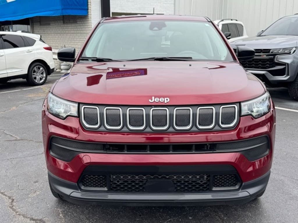 CARFAX One-Owner. Clean CARFAX. Velvet Red Pearlcoat 2022 Jeep Compass Sport 4WD 9-Speed 948TE Automatic 2.4L I4 ParkView Rear Back-Up Camera, 3.73 Axle Ratio, 4-Wheel Disc Brakes, 6 Speakers, ABS brakes, Air Conditioning, Alloy wheels, AM/FM radio: SiriusXM, Anti-whiplash front head restraints, Brake assist, Bumpers: body-color, Cloth Low-Back Bucket Seats, Compass, Delay-off headlights, Driver door bin, Driver vanity mirror, Dual front impact airbags, Dual front side impact airbags, Electronic Stability Control, Four wheel independent suspension, Front anti-roll bar, Front Bucket Seats, Front Center Armrest w/Storage, Front License Plate Bracket, Front reading lights, Heated door mirrors, Illuminated entry, Knee airbag, Low tire pressure warning, Occupant sensing airbag, Outside temperature display, Overhead airbag, Overhead console, Panic alarm, Passenger door bin, Passenger vanity mirror, Power door mirrors, Power steering, Power windows, Quick Order Package 2GA, Radio: Uconnect 5 w/10.1" Display, Rear anti-roll bar, Rear seat center armrest, Rear window defroster, Rear window wiper, Remote keyless entry, Speed control, Split folding rear seat, Spoiler, Steering wheel mounted audio controls, Tachometer, Telescoping steering wheel, Tilt steering wheel, Traction control, Trip computer, Variably intermittent wipers, Wheels: 16" x 6.5" Aluminum Painted, ParkView Rear Back-Up Camera.