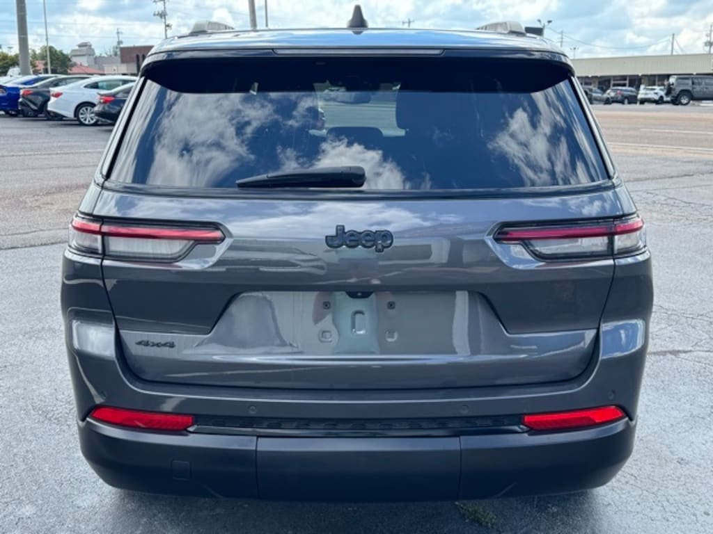 CARFAX One-Owner. Clean CARFAX. Baltic Gray Metallic Clearcoat 2024 Jeep Grand Cherokee L Altitude 4WD 8-Speed Automatic 3.6L V6 24V VVT Altitude Appearance Package, Capri Leatherette/Suede Seats, Heated Front Seats, Heated Steering Wheel, Power Liftgate, Quick Order Package 23B Altitude, Rain Sensitive Windshield Wipers, Remote Start System, Wheels: 18" x 8.0" Fully Painted Aluminum 1, 115V Auxiliary Power Outlet, 2nd Row 60/40 Bench w/Manual Tip/Slide, 2nd Row Seat Center Armrest/Cupholders, 3 Rear Seat Head Restraints, 3.45 Rear Axle Ratio, 3rd Row Charge-Only USB Ports, 3rd row seats: split-bench, 4-Wheel Disc Brakes, 6 Speakers, 7-Passenger Seating, ABS brakes, Air Conditioning, Alloy wheels, Anti-whiplash front head restraints, Automatic temperature control, Black Headliner, Brake assist, Bumpers: body-color, Center Rear 3-Point Seat Belt, Cloth Seats, Compass, Delay-off headlights, Delete Laredo Badge, Driver door bin, Driver vanity mirror, Dual front impact airbags, Dual front side impact airbags, Electronic Stability Control, Emergency communication system, Four wheel independent suspension, Front anti-roll bar, Front Bucket Seats, Front Center Armrest w/Storage, Front dual zone A/C, Front License Plate Bracket, Front reading lights, Fully automatic headlights, Gloss Black Exterior Accents, Heated door mirrors, Illuminated entry, Knee airbag, Low tire pressure warning, Manual Fold Seatbacks, Normal Duty Suspension, Occupant sensing airbag, Outside temperature display, Overhead airbag, Overhead console, Panic alarm, ParkView Rear Back-Up Camera, Passenger door bin, Passenger vanity mirror, Power door mirrors, Power driver seat, Power steering, Power windows, Radio data system, Radio: Uconnect 5 w/8.4" Display, Rear air conditioning, Rear anti-roll bar, Rear reading lights, Rear window defroster, Rear window wiper, Reclining 3rd row seat, Remote keyless entry, Security system, Selectable Tire Fill Alert, Speed control, Speed-Sensitive Wipers, Split folding rear seat, Spoiler, Steering wheel mounted audio controls, Tachometer, Telescoping steering wheel, Tilt steering wheel, Traction control, Trip computer, Variably intermittent wipers, Voltmeter, Wireless Charging Pad, Altitude Appearance Package, Capri Leatherette/Suede Seats, Heated Front Seats, Heated Steering Wheel, Power Liftgate, Quick Order Package 23B Altitude, Rain Sensitive Windshield Wipers, Remote Start System, Wheels: 18" x 8.0" Fully Painted Aluminum 1.