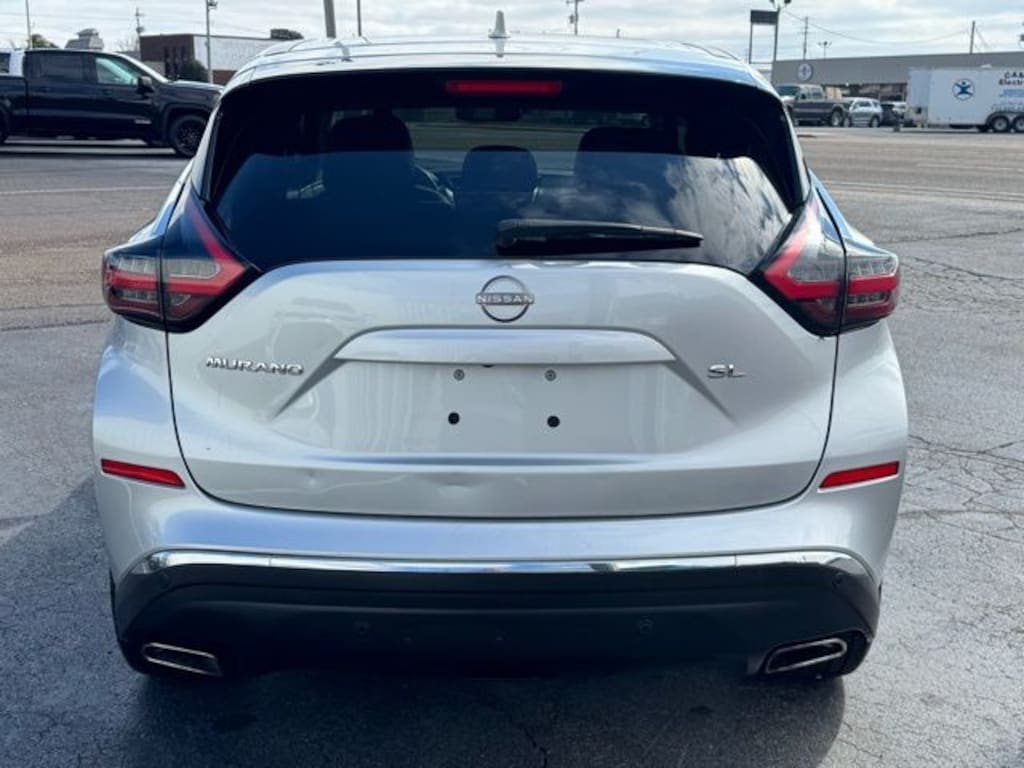 CARFAX One-Owner. Clean CARFAX. Brilliant Silver Metallic 2023 Nissan Murano SL FWD CVT with Xtronic 3.5L V6 DOHC 24V Dual-Panel Moonroof, Heated steering wheel, Navigation system: NissanConnect Navigation, Power Liftgate, SL Moonroof Package, Wheels: 20" Machined Aluminum-Alloy, 11 Speakers, 4-Wheel Disc Brakes, 4.667 Axle Ratio, ABS brakes, Air Conditioning, Alloy wheels, AM/FM radio: SiriusXM, AM/FM/CD/MP3/WMA Audio System, Auto High-beam Headlights, Auto-dimming Rear-View mirror, Automatic temperature control, Blind Spot Warning, Brake assist, Bumpers: body-color, Carpeted Floor Mats & Carpeted Cargo Mat, CD player, Child-Seat-Sensing Airbag, Delay-off headlights, Driver door bin, Driver vanity mirror, Dual front impact airbags, Dual front side impact airbags, Electronic Stability Control, Exterior Parking Camera Rear, Four wheel independent suspension, Front anti-roll bar, Front Bucket Seats, Front Center Armrest, Front dual zone A/C, Front fog lights, Front reading lights, Fully automatic headlights, Garage door transmitter: HomeLink, Heated door mirrors, Heated Front Bucket Seats, Heated front seats, Heated rear seats, Illuminated entry, Illuminated Kick Plates, Illuminated Kick Plates (PIO), Knee airbag, Leather-Appointed Seat Trim, Low tire pressure warning, Memory seat, NissanConnect featuring Apple CarPlay and Android Auto, Occupant sensing airbag, Outside temperature display, Overhead airbag, Overhead console, Panic alarm, Passenger door bin, Passenger vanity mirror, Power door mirrors, Power driver seat, Power passenger seat, Power steering, Power windows, Premium audio system: Bose, Radio data system, Rear anti-roll bar, Rear reading lights, Rear seat center armrest, Rear side impact airbag, Rear window defroster, Rear window wiper, Remote keyless entry, Roof Rail Delete, Security system, Speed control, Speed-sensing steering, Speed-Sensitive Wipers, Split folding rear seat, Spoiler, Steering wheel mounted audio controls, Tachometer, Telescoping steering wheel, Tilt steering wheel, Traction control, Trip computer, Turn signal indicator mirrors, Variably intermittent wipers, Dual-Panel Moonroof, Heated steering wheel, Navigation system: NissanConnect Navigation, Power Liftgate, SL Moonroof Package, Wheels: 20" Machined Aluminum-Alloy.