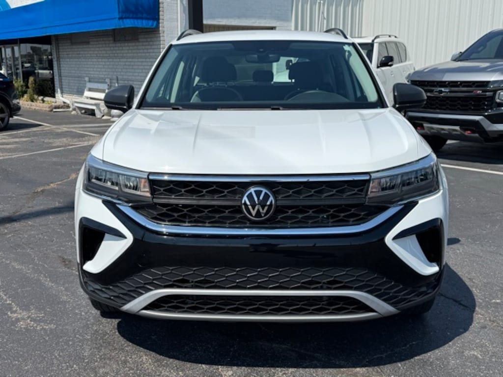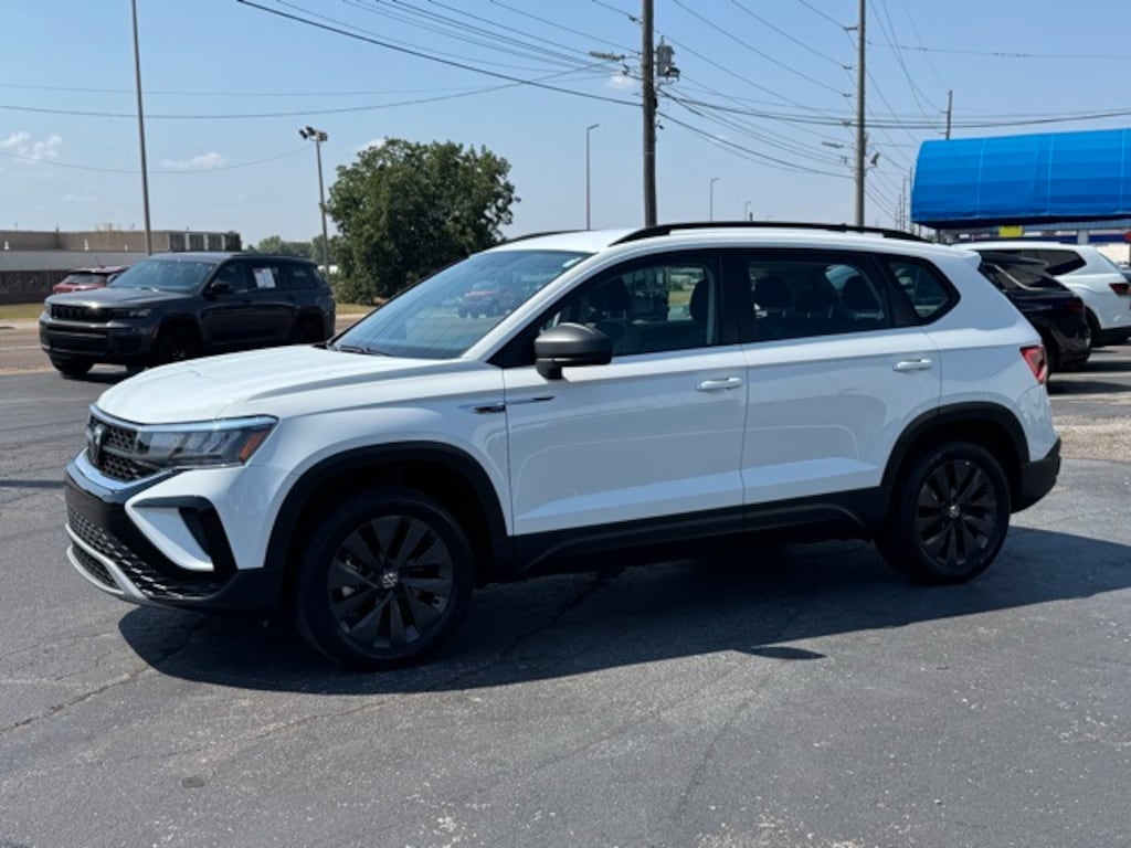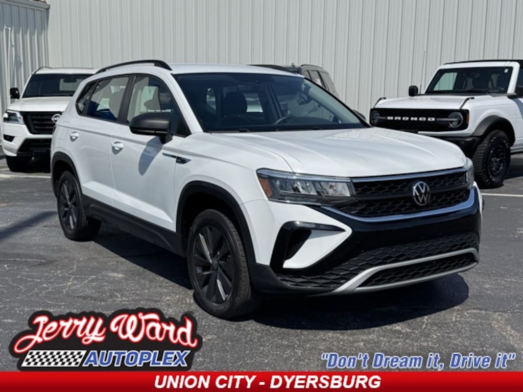 CARFAX One-Owner. Clean CARFAX. Pure White 2023 Volkswagen Taos 1.5T S FWD 8-Speed Automatic with Tiptronic 1.5L I4 Turbocharged DOHC 16V LEV3-SULEV30 158hp 3.23 Axle Ratio, 4-Wheel Disc Brakes, 6 Speakers, ABS brakes, Air Conditioning, Alloy wheels, AM/FM radio, Brake assist, Bumpers: body-color, Cloth Seating Surfaces, Compass, Delay-off headlights, Driver door bin, Driver vanity mirror, Dual front impact airbags, Dual front side impact airbags, Electronic Stability Control, Emergency communication system: VW Car-Net Safe & Secure 5-year, Exterior Parking Camera Rear, First Aid Kit, Front anti-roll bar, Front Bucket Seats, Front Center Armrest, Front reading lights, Front Strut Rear Torsion Beam Suspension, Front wheel independent suspension, Fully automatic headlights, Illuminated entry, Low tire pressure warning, Occupant sensing airbag, Outside temperature display, Overhead airbag, Overhead console, Panic alarm, Passenger door bin, Passenger vanity mirror, Power door mirrors, Power steering, Power windows, Radio data system, Radio: Composition Color AM/FM, Rear anti-roll bar, Rear seat center armrest, Rear window defroster, Rear window wiper, Remote keyless entry, Roadside Assistance Kit, Roof rack: rails only, Rubber Mats Kit (SNM), Speed control, Speed-sensing steering, Split folding rear seat, Spoiler, Steering wheel mounted audio controls, Tachometer, Telescoping steering wheel, Tilt steering wheel, Traction control, Trip computer, Variably intermittent wipers, VW Car-Net Safe & Secure 5-Year Plan, VW Care, Wheels: 17" Silver Painted Alloy.